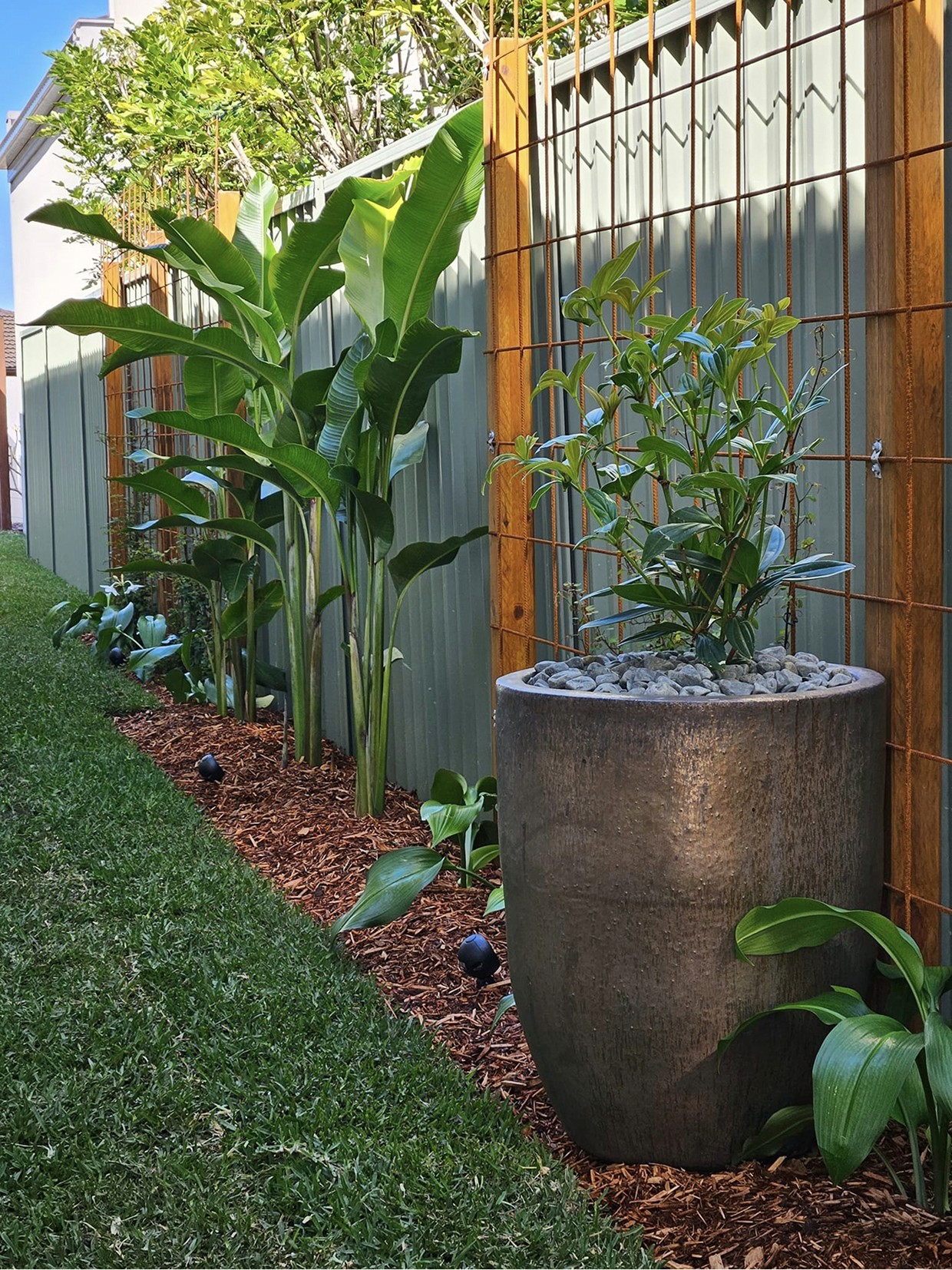 A new home landscape built around views and a dedicated meditation retreat overlooking the Botanical Gardens. The project included pool surrounds, boundary fencing and security gates, and a series of clean, functional garden zones designed in collaboration with the owner, a keen gardener, with fruit trees and an Asian-inspired contemporary feel.