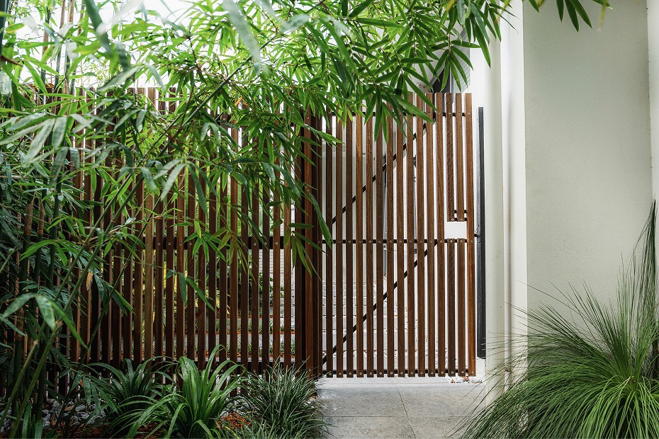 Timber batten screening and gate to add privacy and define zones