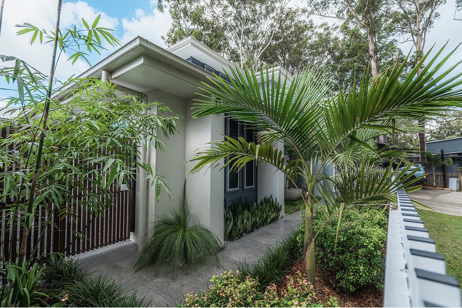 Lush tropical gardens to soften the space and frame key views