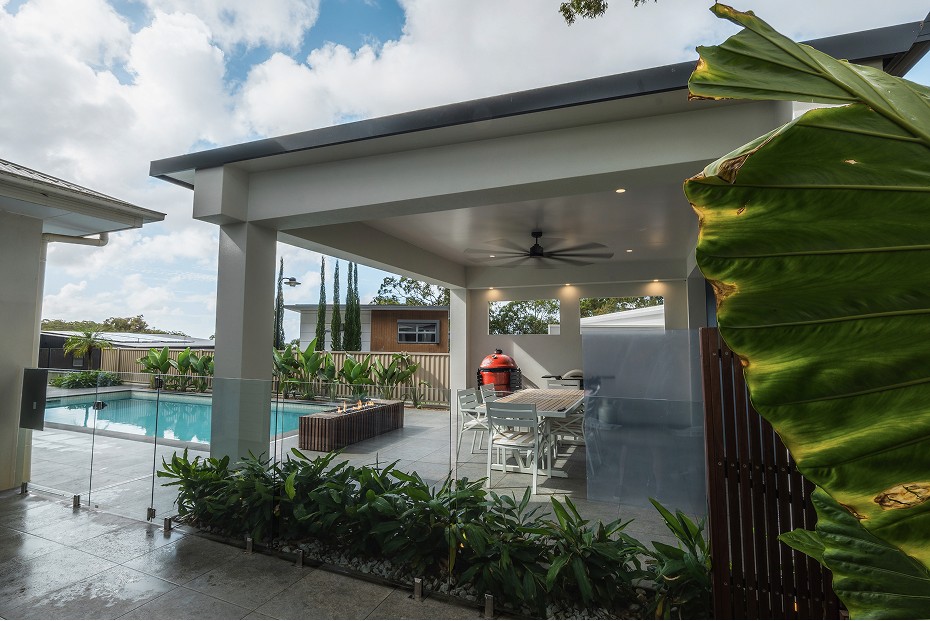 Turn the area around the new pool into a finished outdoor lifestyle area. The space needed a clear layout for entertaining, a strong feature element to anchor the pavilion area, and planting that would make it feel established and private without closing it in.