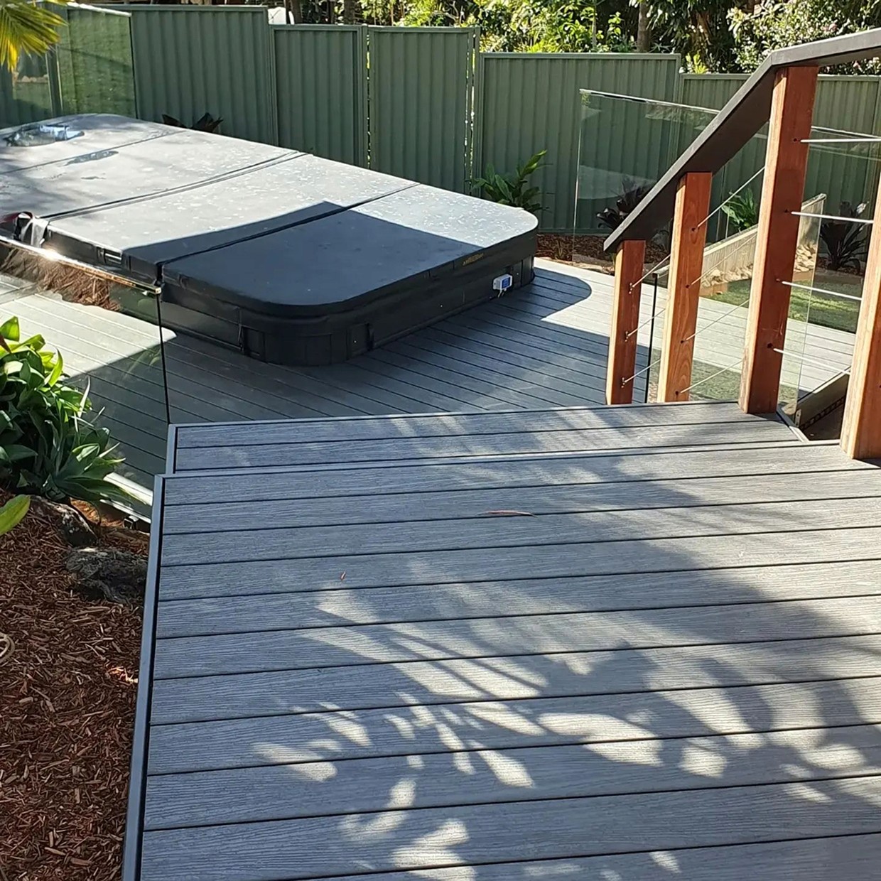 Composite decking to wrap the spa surrounds for a clean, low-maintenance finish