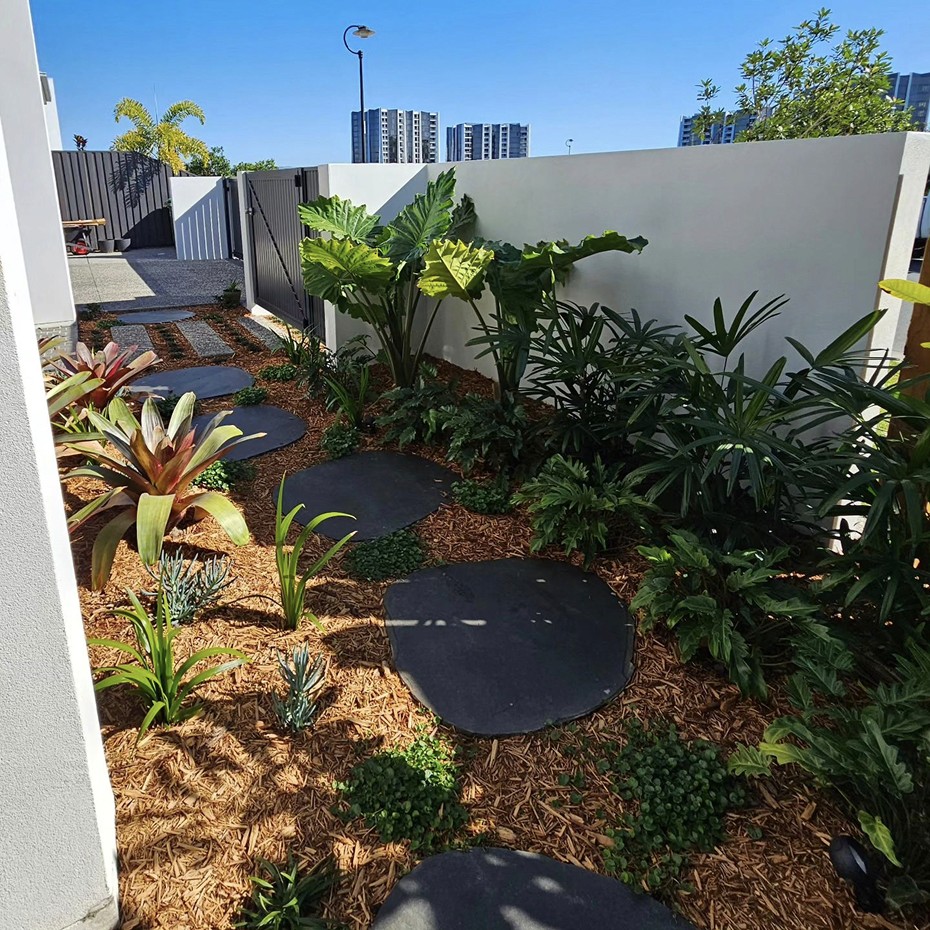 Added new turf and garden zones, plus irrigation, lighting, and finishing details throughout