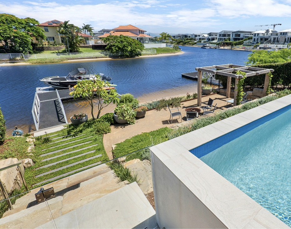 Create a more private, secure frontage and upgrade the backyard so it feels like one connected space from the front entry through to the waterfront. The key was better access between levels, more usable lawn and garden areas, and finishes that suit the modern home.